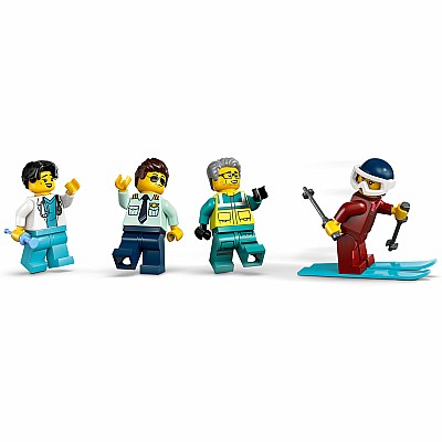 Kids enjoy an immersive building experience before taking off for action-packed LEGO rescue missions. Storytelling soars as they build an emergency air ambulance plane brick by brick. It's packed with realistic features and functions including a twin engine, fold-down boarding stairs, detailed cockpit, and high-tech medic lab! Also includes a snow scooter and a small airport scene with a toy wind sock, plus toy first-aid accessories and pilot, doctor, paramedic and skier minifigures. Includes 403 pieces.