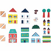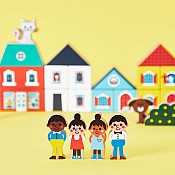 Encourage open-ended building with this gorgeous set of wooden blocks: houses, people, and pets! From Juratoys for ages 2+ yrs.
