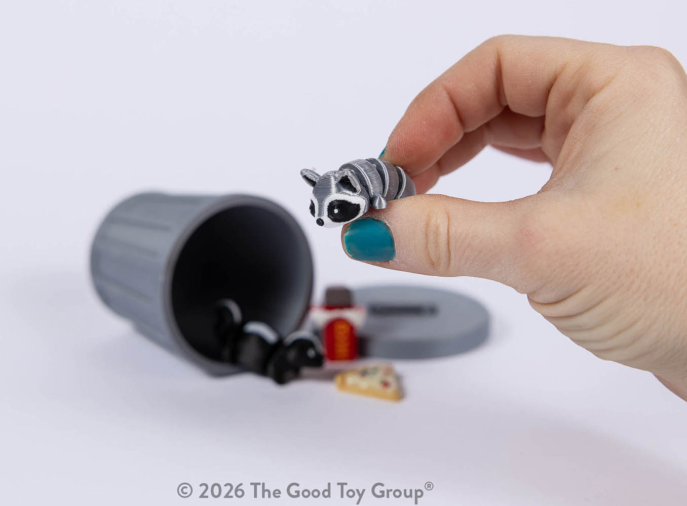 Kids love surprises, and they love animals that get a little gross...like raccoons, opossums, and skunks! In each of these Trash-mals blind boxes, they'll know one fidget friend inside, but the second is a surprise. Each set also comes with two fun accessories and a trash can for storytelling play. Animals are 3D printed fidgets! Collect and trade all 4 fun styles, each sold separately in blind boxes.