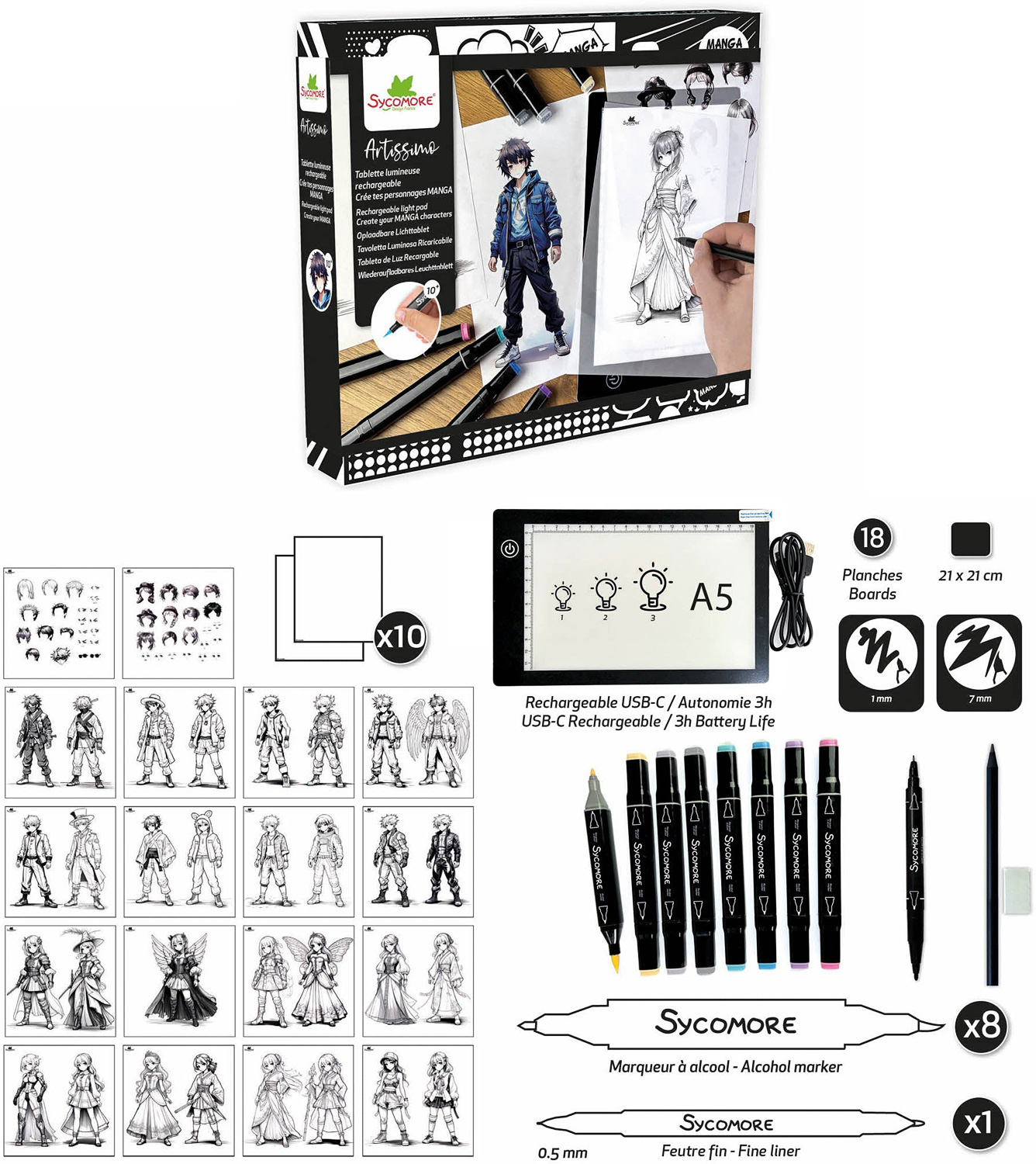 Sycomore Artissimo Create Your Manga Characters Rechargeable Light Pad