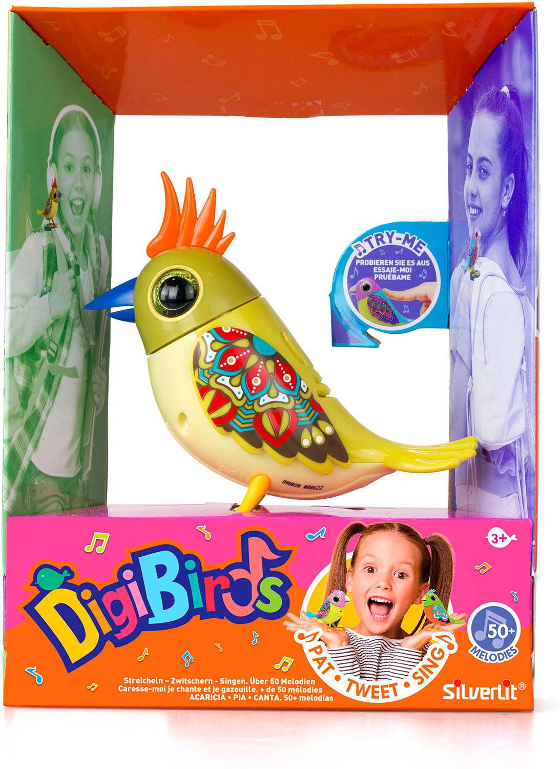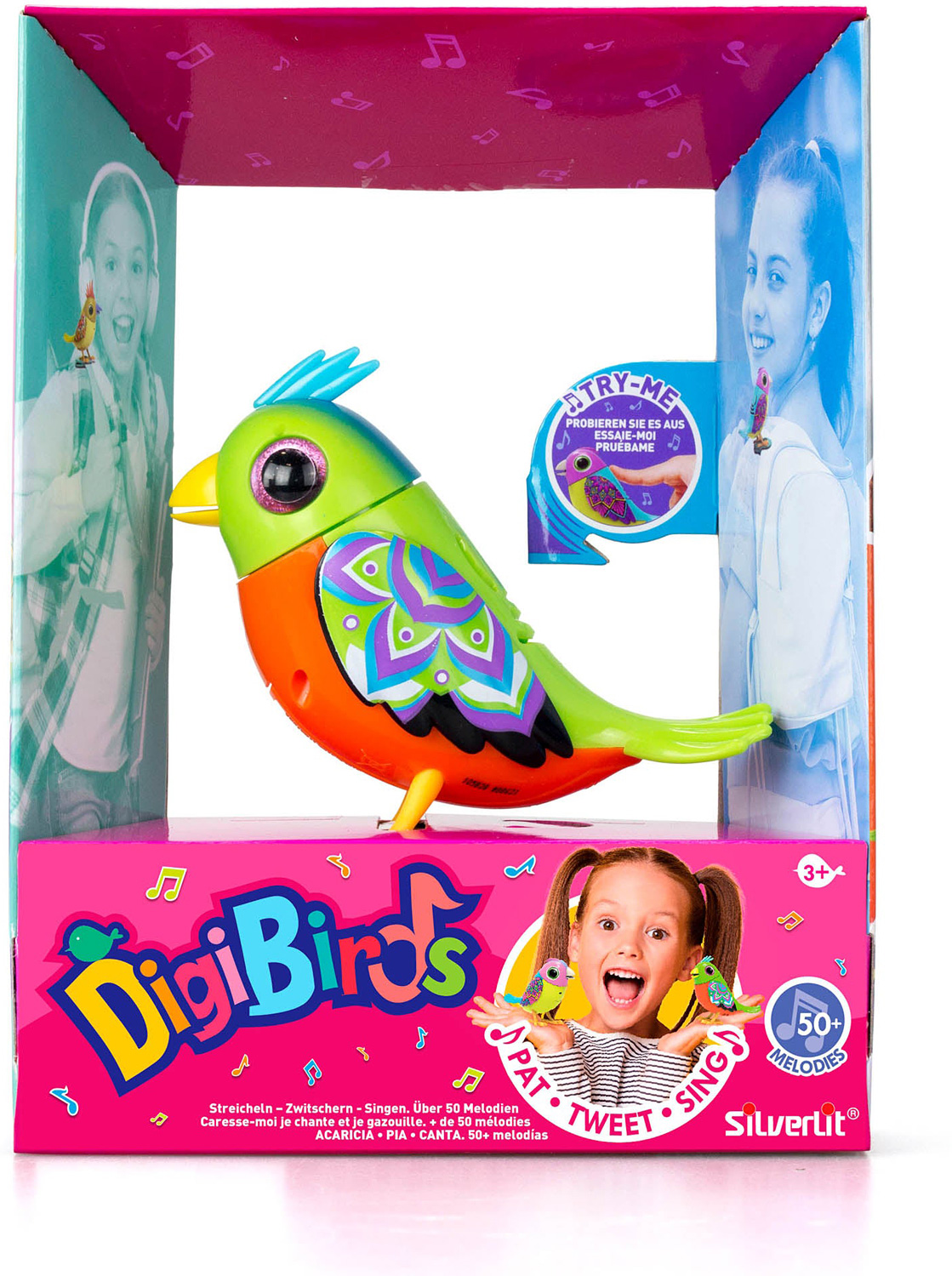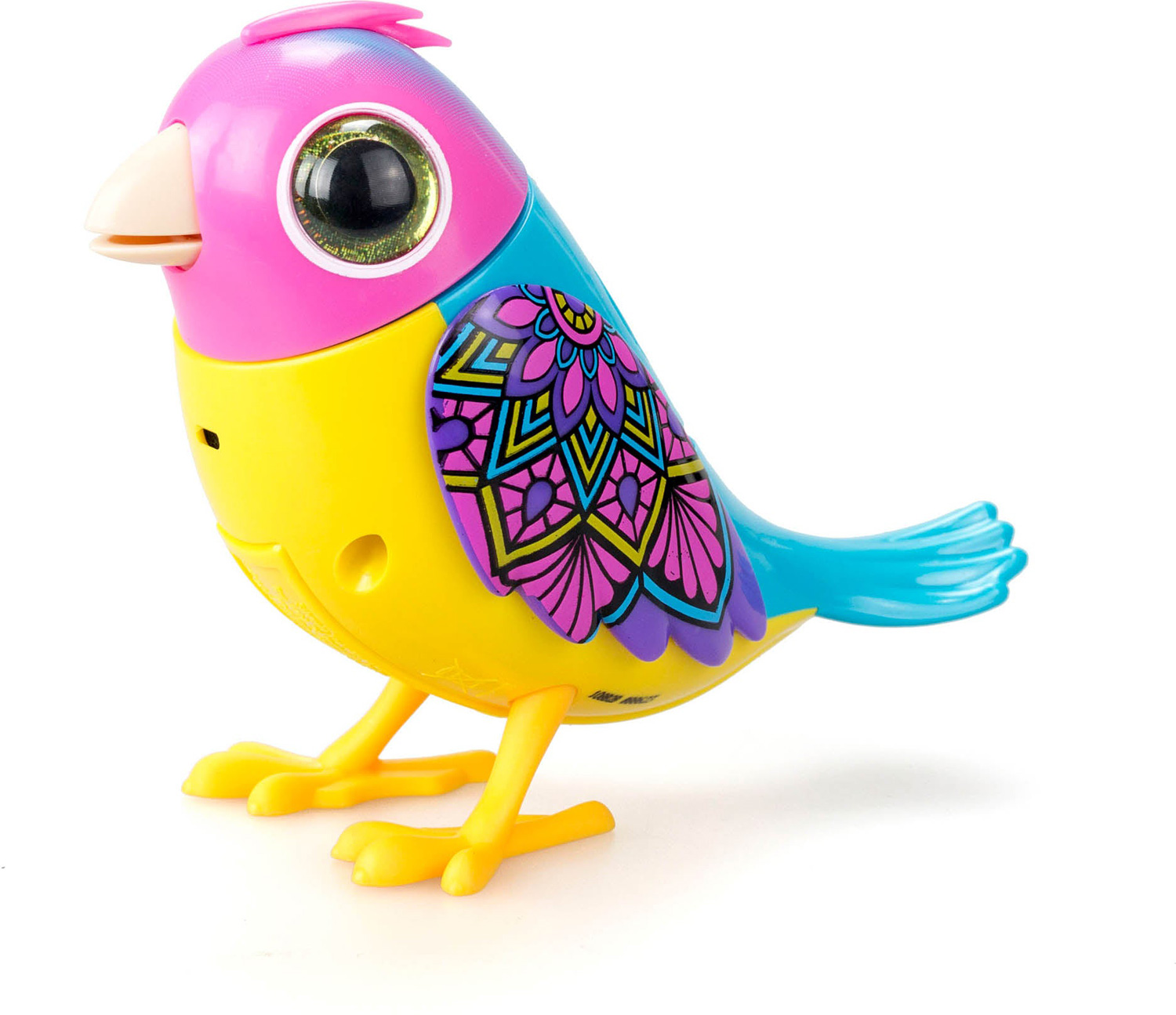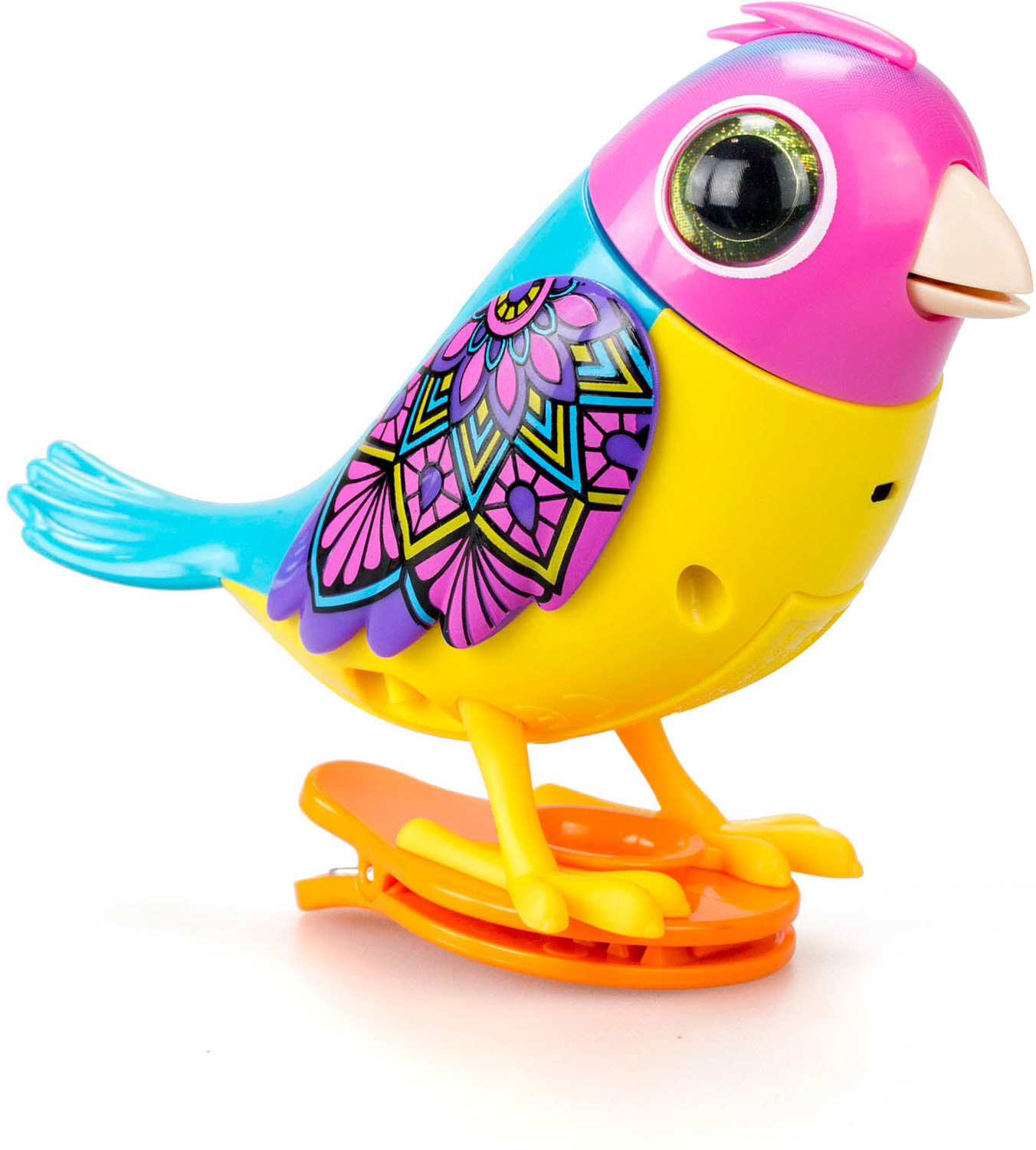 Birds of a feather flock together, and these interactive Digibirds want to come home to roost with you! Available in 12 collectible styles, each bird responds to touch and noise just like a real pet. In Solo Mode, pat its back to make it tweet; whistle or blow to hear it sing one of 50+ melodies; slide Digibird onto the clip and it will sit on your shoulder or wherever you place it. Bring multiple Digibirds together in Choir Mode and they'll sync up with sounds and movement! We love it as an Easter basket stuffer or birthday gift. Each sold separately. Requires 1 AAA battery, included.
