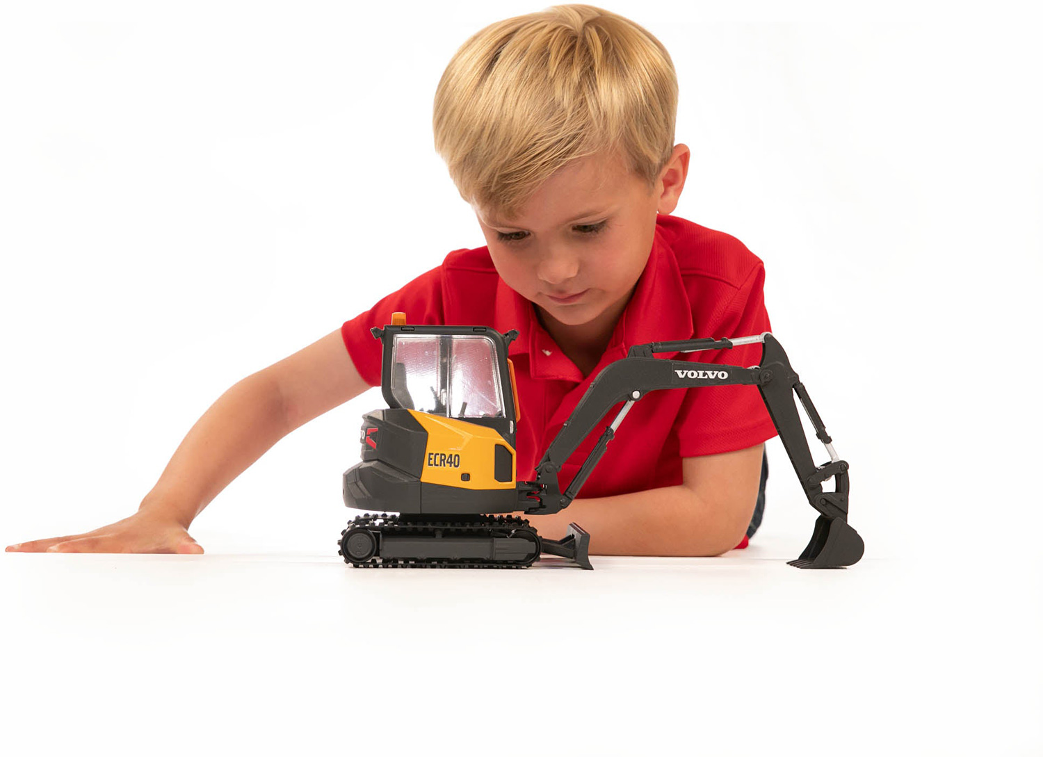 Beep, beep, beep! Put on your hard hat and enter an imagination-powered world of construction! Kids who love machinery enjoy hours of pretend play fun with this mini Volvo ECR40 excavator. They'll feel like they're operating real machinery as they rotate the cab 360 degrees, push it along the tracked rubber chassis, scoop the excavator arm below grade for optimal digging, and flatten snow or sand with the leveling blade. The doors of this 8.9" x 6.5" x 4.5" excavator open to allow Bworld figures to sit inside (sold separately).